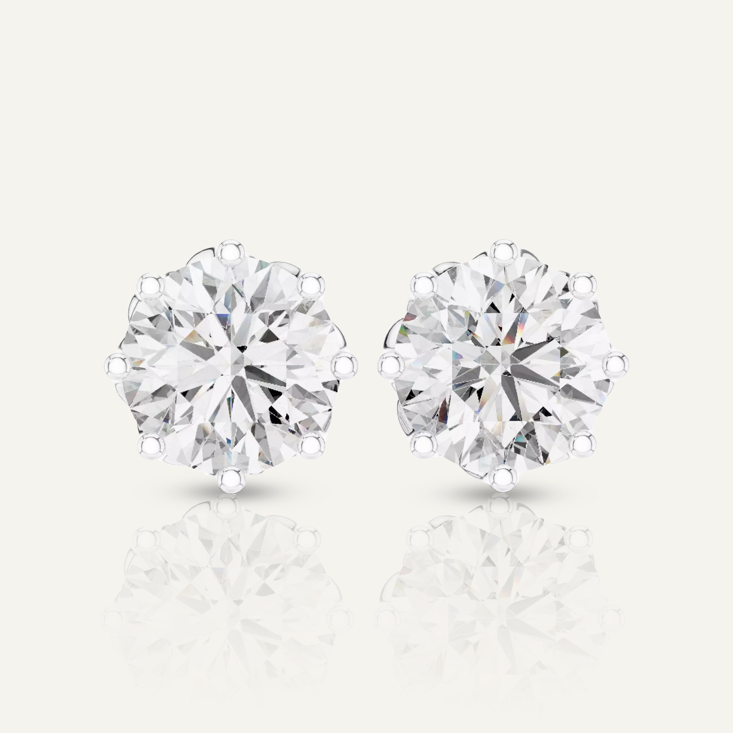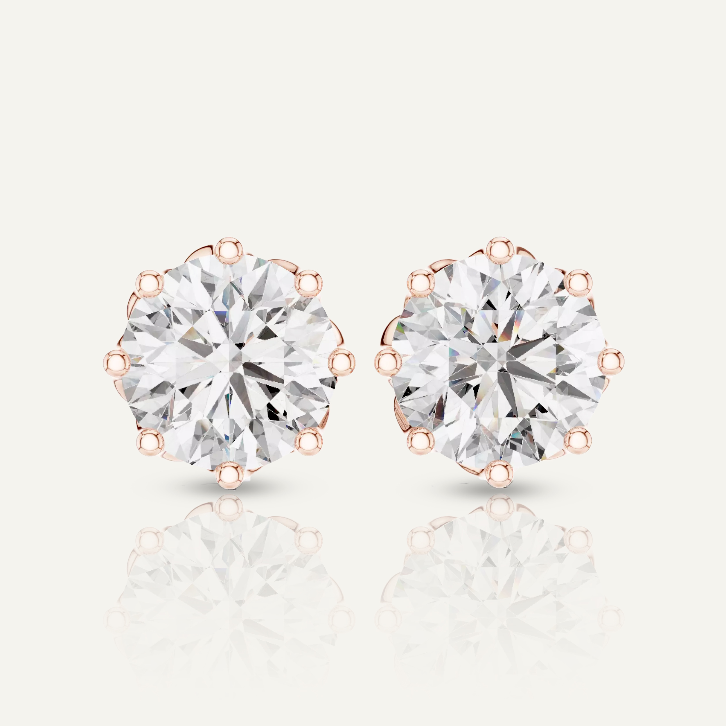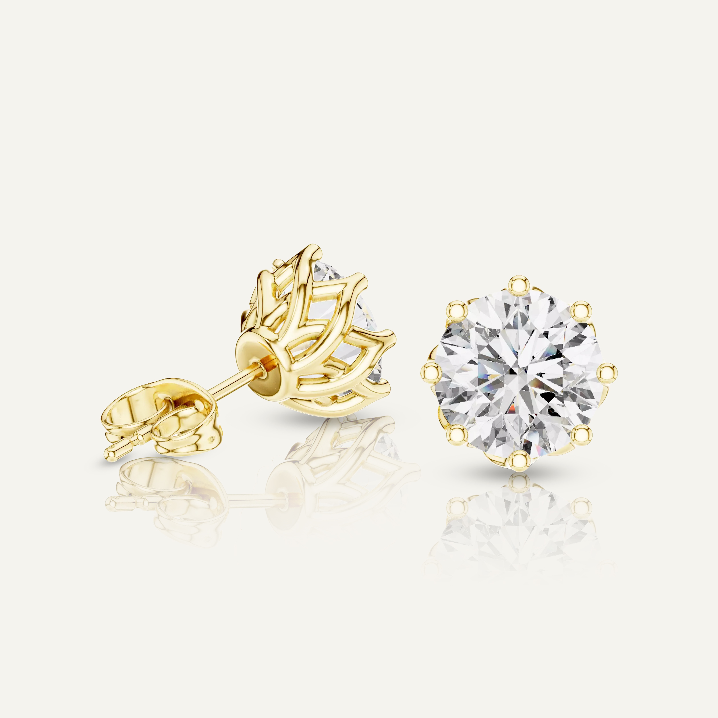 Enhance your shine with our Floral-Set Round Diamond Stud Earrings. With a total of 4 CTW, each earring features a dazzling 2ct round diamond in a unique, twisted gold setting, crafted with VS clarity, E-F color IGI certified lab diamonds.